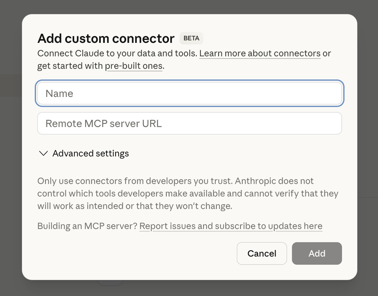 Para añadir conectores personalizados (Custom Connectors o MCP) en Claude normalmente es necesario utilizar un plan de pago.