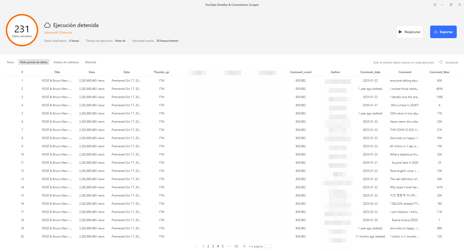 Paso 3: Ejecutar la extracción y descargar los comentarios