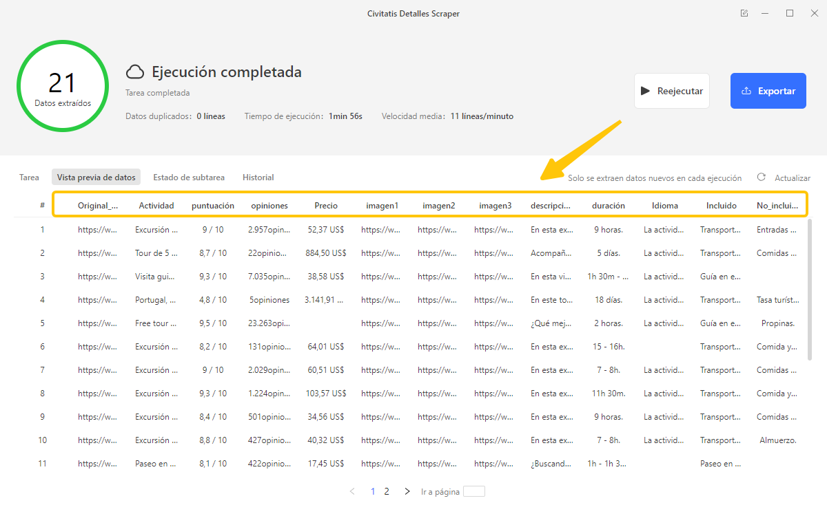 Ejemplo de datos de Civitatis Listados Scraper👇