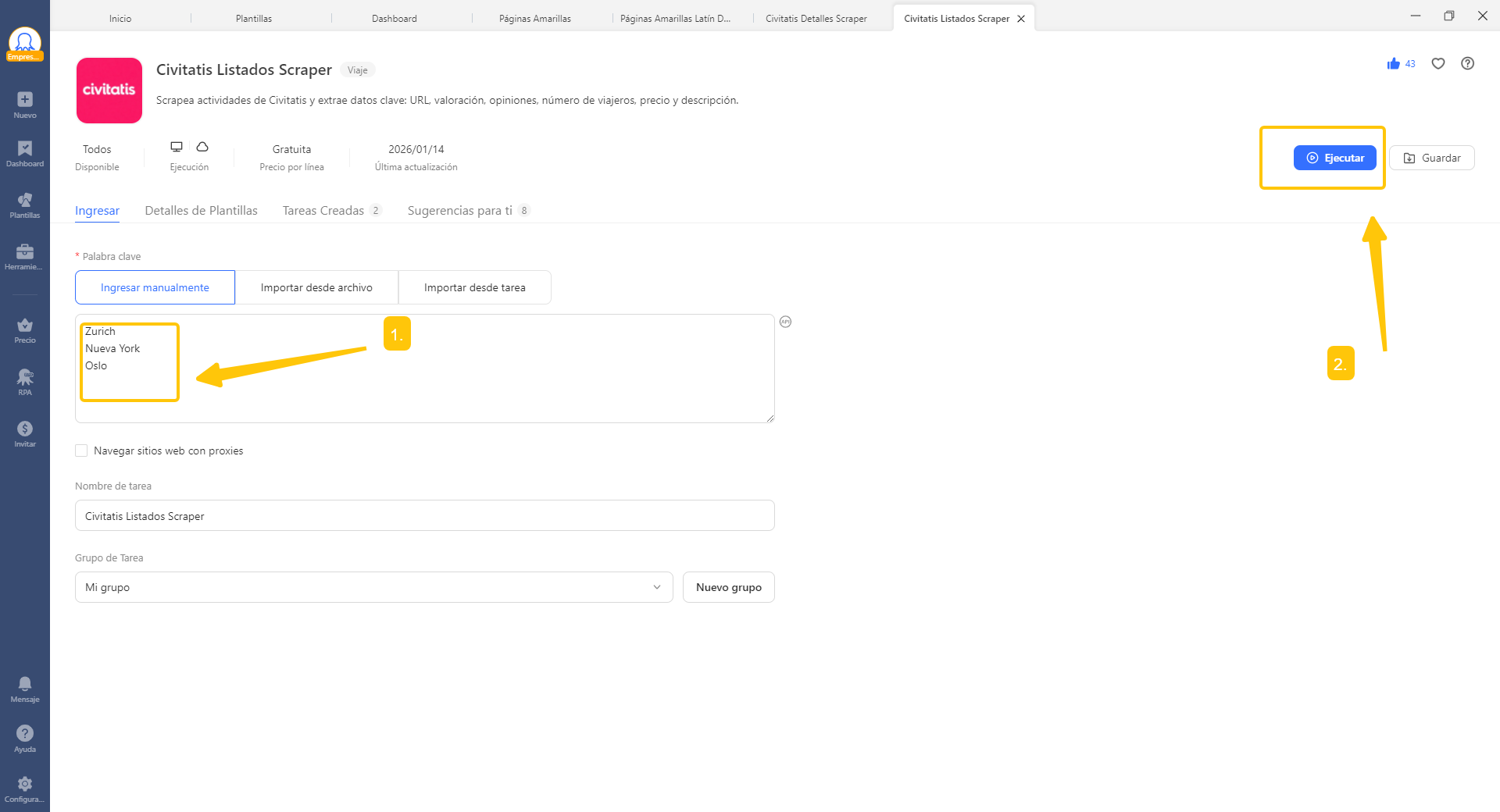 2. Luego, abre la plantilla Civitatis Listados Scraper en Octoparse.