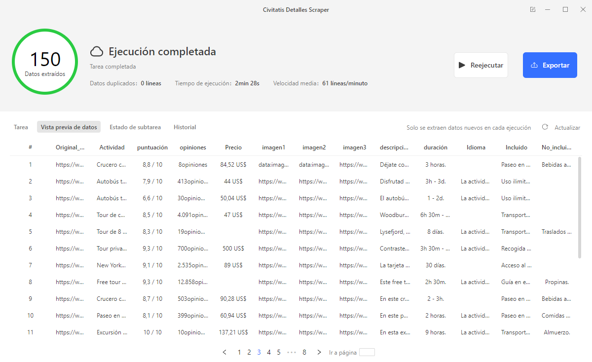 - Extraer múltiples actividades a la vez desde una página de resultados de Civitatis
