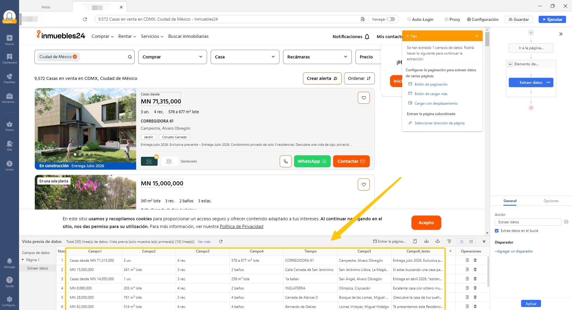 Este tipo de automatización permite pasar de la simple extracción de datos al monitoreo inteligente del mercado inmobiliario en México.
