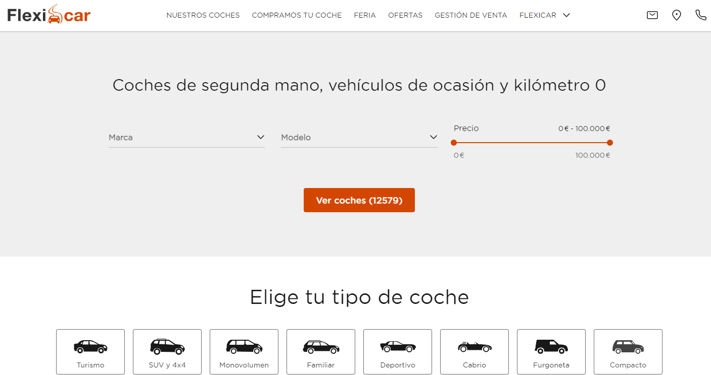 Flexicar es una empresa que se dedica a algo más que a la compra y venta de coches usados. Como líder en el sector del automóvil online, miles de clientes están satisfechos con ellos, y muchos de ellos exclaman lo fácil que es cambiar su coche con la ayuda de Flexicar. Con más de 1.200.000 visitas al mes y un servicio de entrega a nivel nacional, su web es un referente en la venta de coches en España.